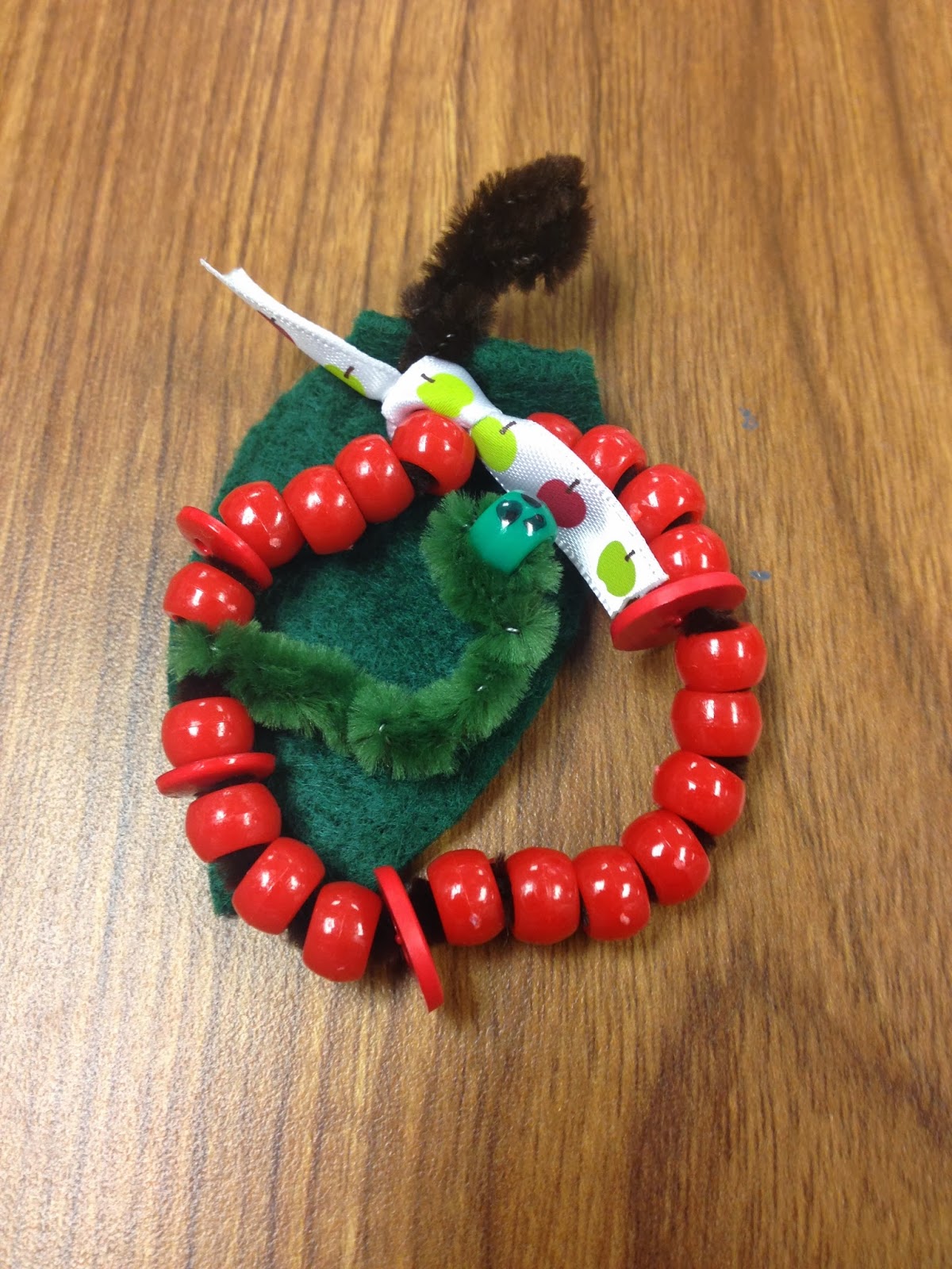 They also made a cute craft with my class.   They made apple magnets made out of beads, pipe cleaner, and felt.  They turned out so cute!   I love when parents are able to come in and do activities with kids. I think the kids get a lot out of it and they always have fun.  This year I have great parent volunteers and I am so thankful, but it does not always work out like this.