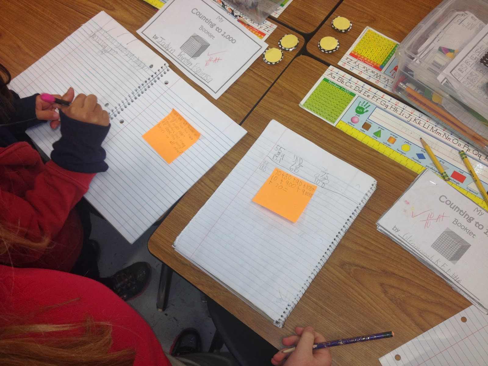 On a different note: Do any you ever play the game Mix, Pair, Share? I am not really sure what the official rules are for this game, but a long time ago {a really long time ago} I saw a teacher playing this game with her class. Well, I have adopted this game and love it. I always use it to review right before a test. I pass out sticky notes to each student. I tell them that they have to pretend that they are the teacher and think of a question that a teacher might would put on the test. I love having the kids to come up with their own questions. It is great practice for them to ask questions to one another. It opens up a door for better understanding. After everyone has their questions ready to go I have them stand up. I say, “MIX” and the class starts walking around the room with their sticky note questions and their Math Learning Logs. After a few seconds of doing this I then say, “PAIR”. The student pairs up with the person closest to them. Then I say, “Share”. They ask each other their questions and solve the problem in their Math Learning Log. Then they share with each other how they came to the conclusion of their answer. After having time to complete the task. Then then round starts all over again, but this time they must pair with someone new. My class loves playing this game. I think it is because first of all they are getting to write on a sticky note and let’s face it who does not like sticky notes. I also think they love this game because they are in charge of all the questioning and sharing going on. I am just a facilitator. I have come to realize that kids like it when they “THINK” they are in charge. So if you looking of a quick and fun game to play maybe next time remember Mix, Pair, & Share. If you have a different version of how to play this game I would love to hear about it.