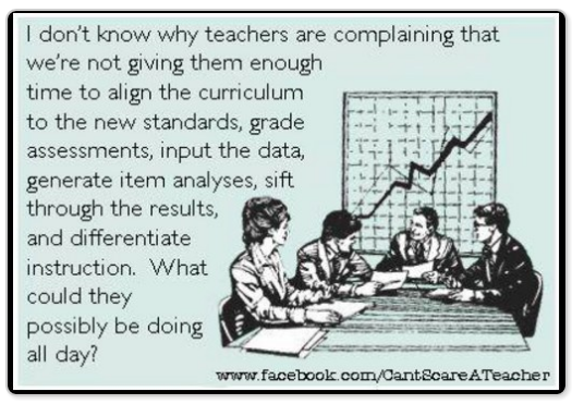 I have been teaching for sometime now (about 16 years … did I just say this a loud), and I have seen more and more added to the plate as far as formal data keeping goes for teachers. I know this is in large fact due to teachers being held accountable and The No Child Left Behind Act. But I honestly find that I really only use a few pieces of data to set up my RTI groups and assess my students, the rest I am doing just for paper work, because I am told and it has to be turned in. I find that keeping track on my ONE or TWO pieces of good data is more beneficial for the STUDENT and ME, than having 20 different pieces. It just feels like an overload at times. Does anyone else feel this way?